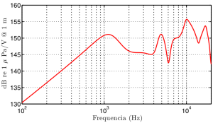 Questa curva di frequenza é per un ingresso di 1 Volt (rms). Con 20 Volt (rms) d'ingresso, aggiungere 26dB per ottenere il livelo sonoro.